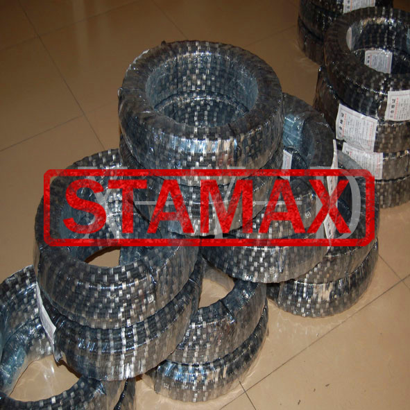 Remark: Other specifications are available as per request of clients. Different types of wire beads specially for different materials are available. Crude rubber coating diamond wire with advantages of good flexibility, good protection for internal steel cable, good safety and stability during cutting, is the best choice for quarrying use of hard materials like granite and sandstone etc. Suggestions for stationary wire cutting machines: 1.The status of beads wear should be regularly inspected, it should be adjusted once unevenly beads wear happens. 2.The status of wear of joints and beads close to joints should be timely checked, and should be replaced timely. 3. Control the cable tension carefully, set it to 250-350KGS for Φ 4. Change the linear speed of wire according to materials under cutting, following parameters are for reference only: Hard granite: 20 Medium granite: 22 Soft granite: 25 Hard marble: 28 Soft marble: 30 5. The linear speed should be 2 |